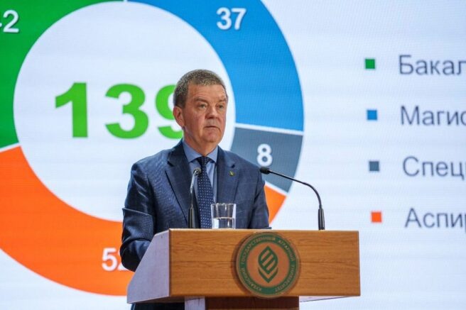 Завершающий в этом учебном году День открытых дверей прошел в Кубанском государственном аграрном университете (КубГАУ). Студентов приветствовал ректор вуза, депутат ЗСК Александр Трубилин. Он отметил, что интерес к университету был настолько велик (на мероприятие приехало более 1600 человек), что актовый зал не смог вместить всех желающих. Поэтому была организована прямая трансляция в соседние аудитории, чтобы у каждого участника была возможность узнать больше информации о вузе, особенностях приемной кампании-2025 и задать интересующие вопросы. Александр Трубилин рассказал гостям об истории университета, достижениях и особых заслугах, а также о визитах руководства страны. Особое внимание он уделил теме целевого набора, назвав это отличной возможностью поступить на бюджет, заранее выбрать направление подготовки и быть уверенным в будущем. Все договоры проходят проверку через Госуслуги, что гарантирует прозрачность и надёжность. «Студенты с первого курса знают, где будут работать после в