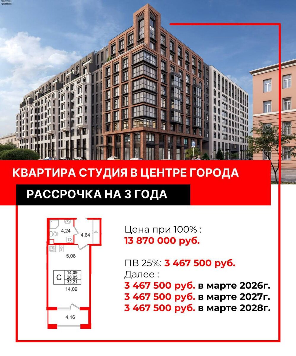 🤩Уникальная рассрочка "25/25/25/25" с платежом всего 1 раз в год Всего 4 платежа по 25% от стоимости квартиры: — 25% первый взнос — 25% в марте 2026 г. — 25% в марте 2027 г. — 25% в марте 2028 г. При первом взносе от 30% предусмотрена скидка 20% с первого взноса.