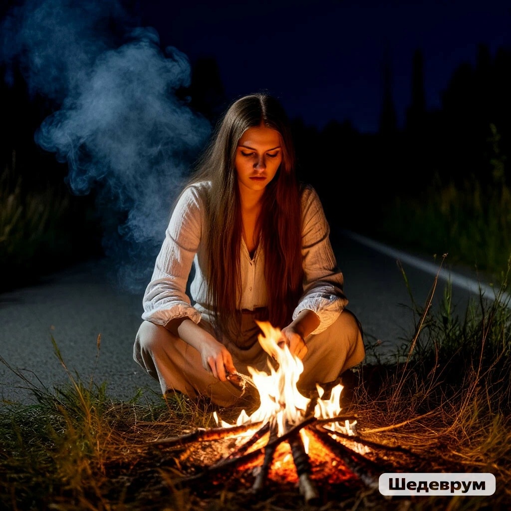 Полынь исправно дымила, вот же удивительно: огонь все - таки разгорелся. Волна отврaтитeльной удyшлuвой вoни потекла по двору, а потом в костерке что - то хлопнуло, и он стал обычным огнем, разведенным из березовых полешек, горящим жарким и ровным пламенем.