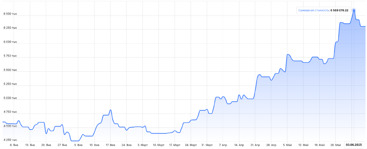 С июня увеличил риск на каждую сделку до 60 000 руб. Неделю начал уверено, работал по сценариям, не реагировал на новостной шум, следил за ключевыми уровнями по индексу МосБиржи. В понедельник купил акции Группы ПИК на выходе из консолидации, а уже к утру вторника, котировки выросли на 8,6% и дошли до тейка. Также, на фоне ожидания снижения ключевой ставки и отскока цен на нефть, купил в понедельник-вторник на пробое акции НОВАТЭКа, Роснефти и Ростелекома. Все позиции были в уверенном плюсе, однако в среду пришлось экстренно закрыть их — после жёсткого заявления Путина в адрес Зеленского: «О чём говорить в таких условиях? Кто вообще ведёт переговоры с террористами?». На этом фоне рынок резко перешёл к снижению на повышенных объёмах. Такие заявления, на мой взгляд, показывают, что пока Зеленский у власти, Путин не будет вести с ним переговоры. А значит, некому подписывать договор о перемирии на высшем уровне. Далее, до пятницы я находился без спекулятивных позиций. Решил действовать по