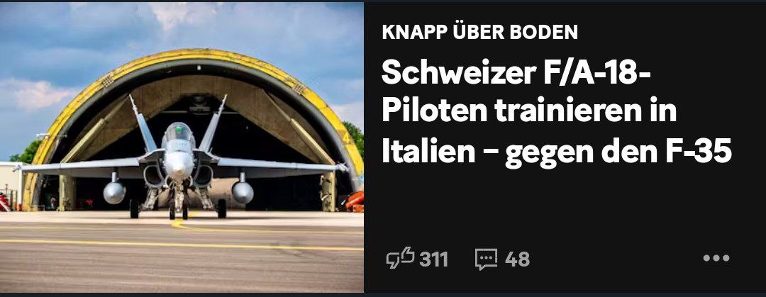📌 " Швейцарские пилоты F/A-18 тренируются в учебных боях против F-35 в Италии.
