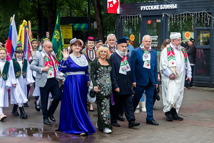 Сегодня в Новосибирской области состоялся традиционный праздник «Сибирский Сабантуй». Праздник отметили весело и радостно, несмотря на моросящий дождь. В этом году мероприятие приурочено к 80-летию Победы в Великой Отечественной войне и Году защитника Отечества, символизируя память, гордость и преемственность поколений. Участниками мероприятия стали представители органов власти, национально-культурных автономий, национальных организаций, творческих коллективов Новосибирской области, гости из регионов Сибирского, Центрального федеральных округов и города Новосибирска. На территории парка культуры и отдыха «Березовая Роща» были организованы интерактивные площадки с национальными играми, мастер-классами, конкурсами, а также традиционный конкурс «Мисс Сабантуя», состязания по поднятию гири, армрестлингу, бою мешками на бревне и многое другое. Работали ярмарки – продажа и выставки произведений татарской культуры по периметру площади возле сцены. В рамках концертной программы мероприятия выс