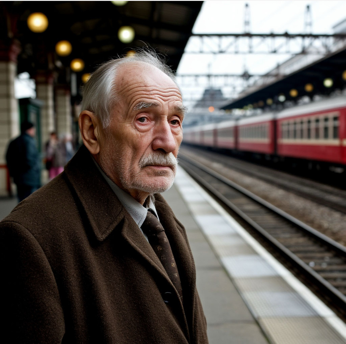 …Он стоял посреди гулкого, всегда чуть влажного от нового дня зала, а в руке сжимал тонкую ладонь женщины в красном палантине. Хрупкая, умудрённая, чуть дрожащая рука — как проводник к другому берегу жизни. Их глаза встретились… И кто сказал бы, что две судьбы, две скатившиеся в безмолвие истории, снова встретились под шумом поездов и объявлений? Николай вдруг осознал: его собственная станция — не конечная. “До встречи, Николай…” — её голос звучал обезоруживающе мягко. Но больше не было ни страшно, ни пусто.