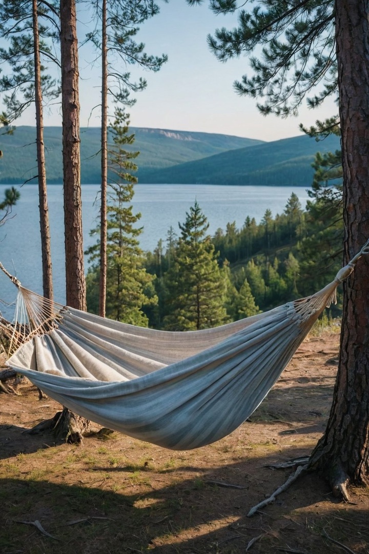 Когда хозяева прибыли на место, Геннадий подвесил гамак между другими, незнакомыми соснами, которые были больше дачных, крупнее и пахли ещё сильнее. Гамак расправился и ахнул, увидев перед собой огромное, ослепительно сияющее на солнце озеро, а над ним бескрайнее синее небо и пушистые белые облака. Это был тот самый простор, о котором и мечтало гамачье сердце!