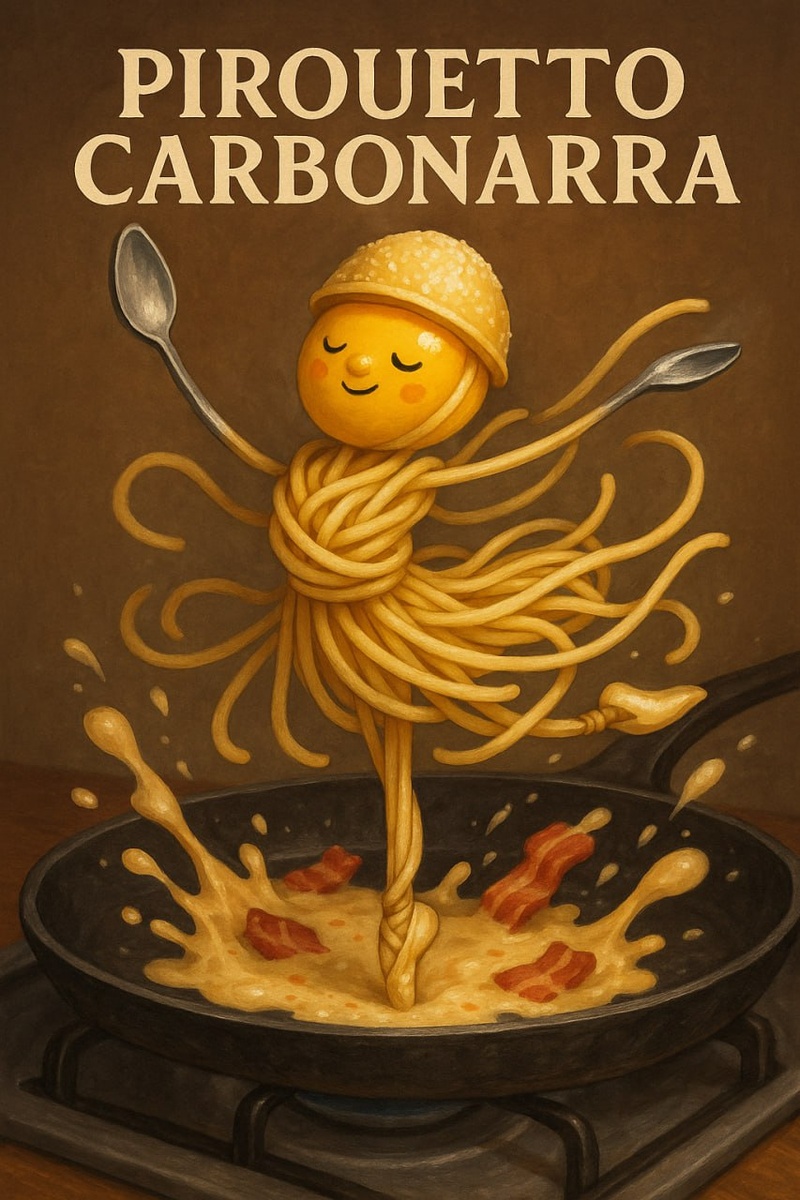 Пируэтто Карбонарра — балетный спагетти, крутящийся так быстро, что готовит соус прямо на себе
