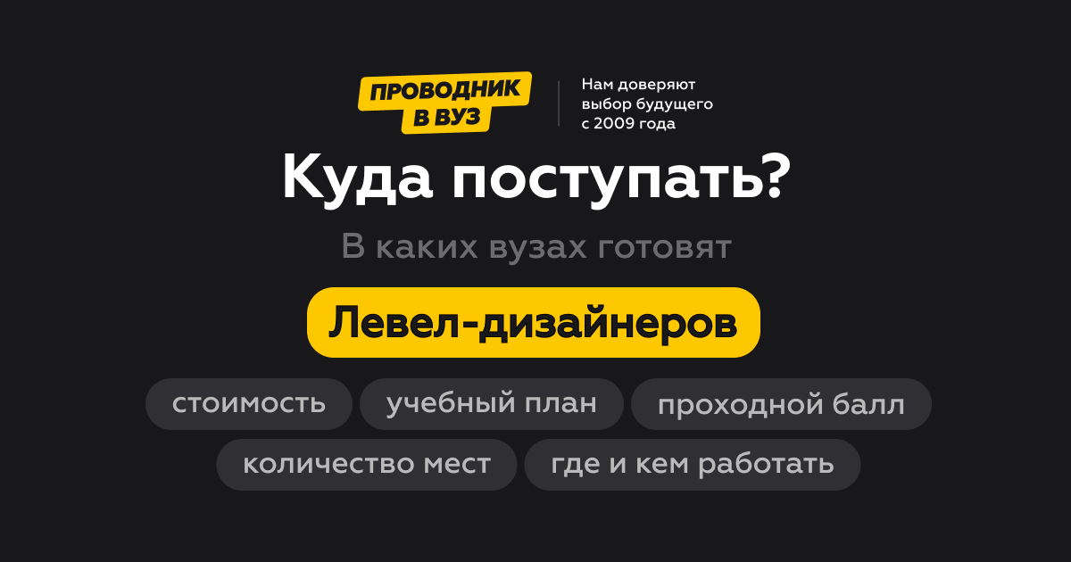 Образовательная программа Гейм - дизайн реализуется в Высшей школе экономики на направлении 54.03.01 Дизайн. Дизайн видеоигр находится на стыке искусства и программирования и выступает как связующее звено между разработчиками, игроками, продюсерами и инвесторами. Решение пойти учиться на гейм-дизайнера — невероятно перспективный и интересный выбор. Школа дизайна НИУ ВШЭ даёт уникальную возможность обучиться на «архитектора Матрицы» в одном из лучших вузов России. На образовательной программе существует 3 специализации по выбору студента: Игровая графика. В основе - работа с изобразительным контентом, но художник будущего создаёт не столько графику и дизайн, сколько образы, смыслы и настроение. Для этого необходимы способность к критическому мышлению, опыт творческой рефлексии и навык эффективных коммуникаций. Специализацию выбирают автономные мультиинструменталисты, способные сделать свои идеи реальностью благодаря принципу «люди верят тому, что в состоянии увидеть». На специализации «