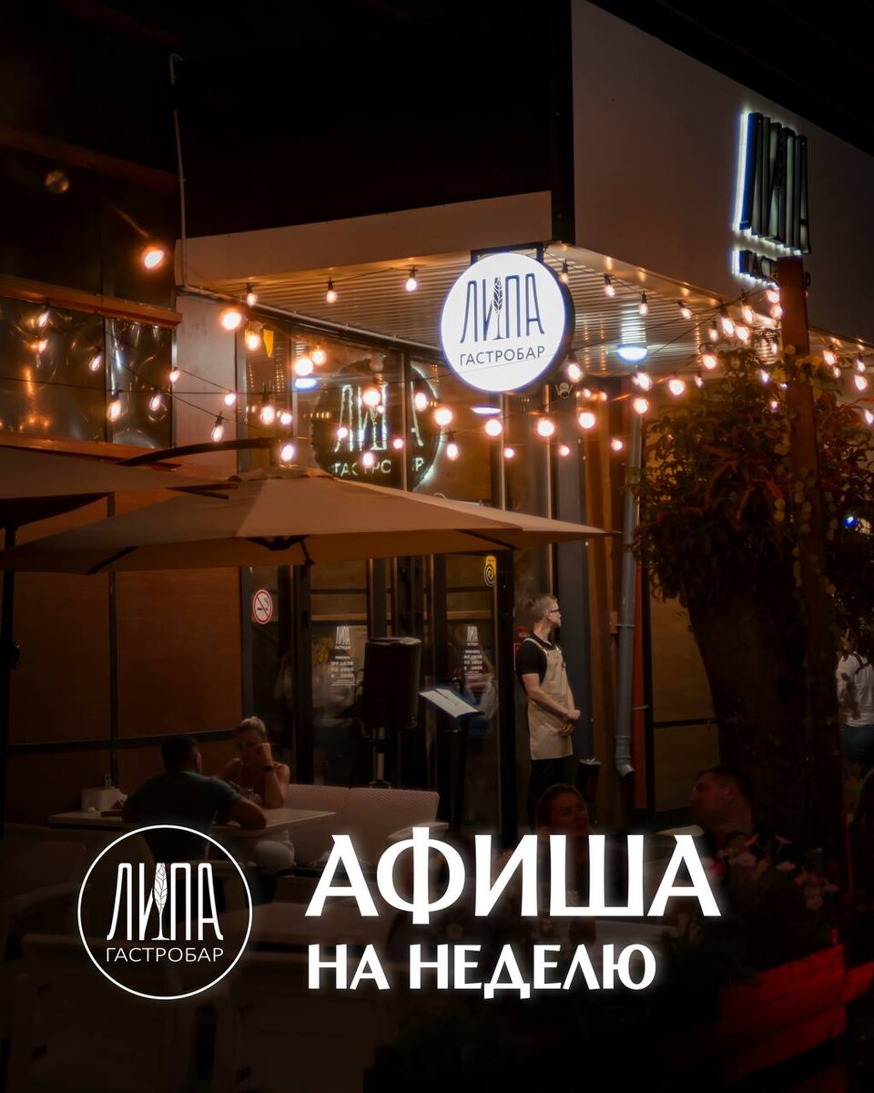 Афиша на неделю с 09.06–15.06: 09.06.(пн) — Акция: "3 коктейля по цене 2" 10.06.(вт) — «Мафия» 🕕19:30 Вход: 500₽ Бронь столов: +79093349573 — Акция "Все настойки удваиваются" Двойная порция любимых вкусов по цене одной! 11.06.(ср) — экспертный нетворкинг «Разборы» 🕕18:00 Вход бесплатный Бронь: +79873083516 — "Любовь, вино, сыр" При заказе винного сета действует скидка в 20% на всю винную карту 12.06.(чт) — Stand Up 🕕19:30 Вход: 400₽. Бронь столов: 89170280408 13.06.(пт) — дегустация коктейлей «Овощной фреш-бар: свежесть без компромиссов» 🕕20:00 4 коктейля - 1000 рублей Бронь столов: +79962044949 14.06.(сб) — дегустация коктейлей «Овощной фреш-бар: свежесть без компромиссов» 🕕20:00 4 коктейля - 1000 рублей Бронь столов: +79962044949 15.06.(вскр) — гештальт-шоу «Проблемки и вопросики» 🕕19:00 Стоимость участия - 600₽ Бронь: +79085477694