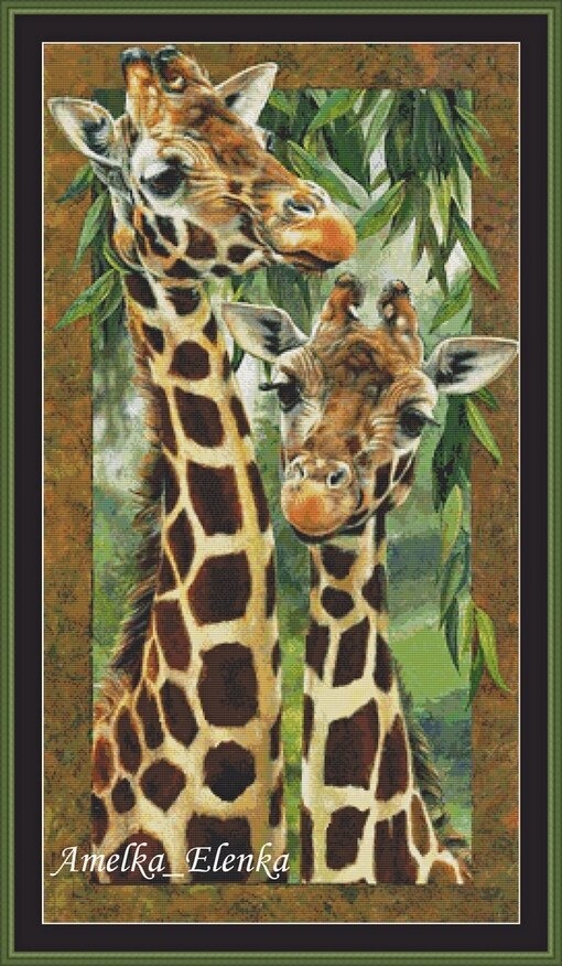 Напоминаю, что я буду оформлять" Жирафов" в уже готовую раму,а она на восемь сантиметров короче вышивки по схеме.