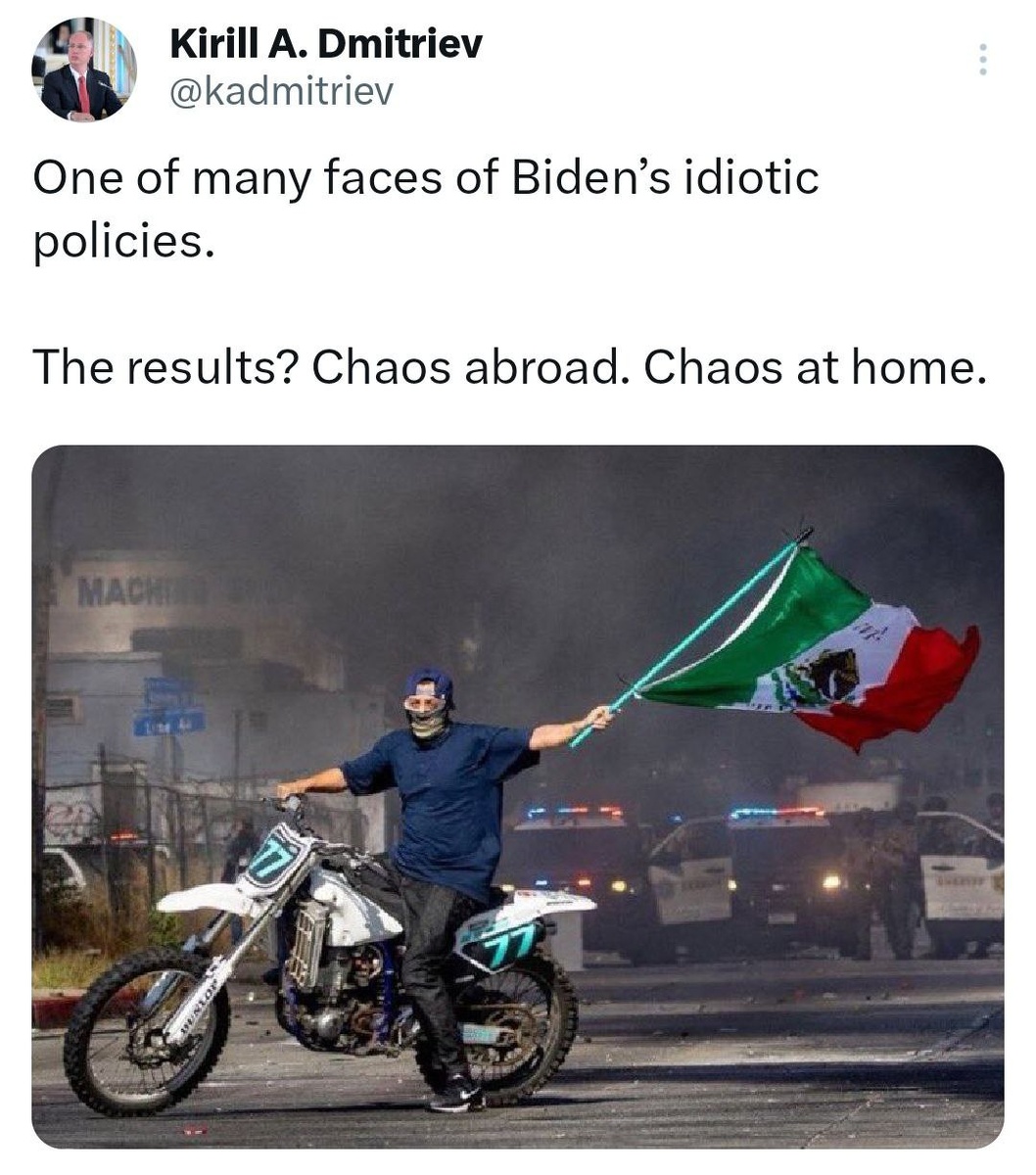 В ответ на пост Putin's envoy @kadmitriev puts anti-ICE 'CHAOS' blame squarely on Biden