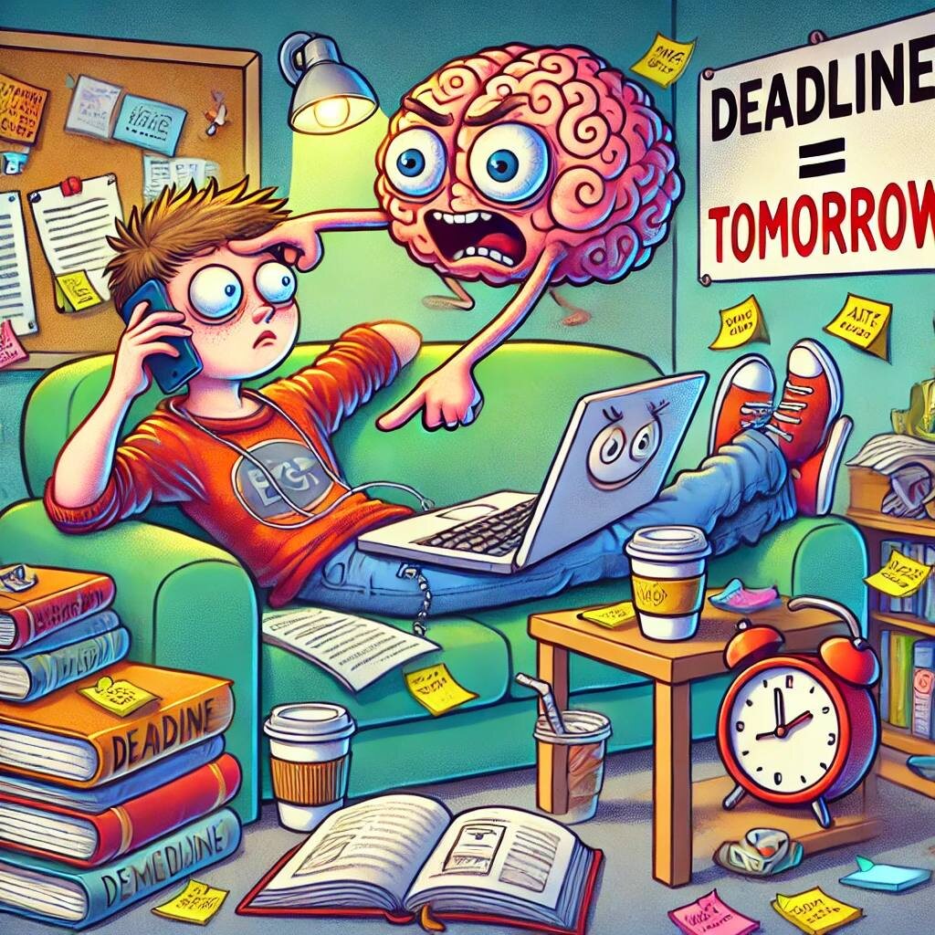🎨 Прокрастинация: когда ты не ленивый, а просто стратег. Ты опять сидишь, пялишься в потолок, хотя у тебя 3 дедлайна, пара незакрытых вкладок с учебником и голос совести, который звучит как преподаватель на 1.5x скорости. Поздравляю — ты в клубе! Сегодня мы разберёмся, почему прокрастинация — это не позор, а целый лайфстайл. Ну, почти. 📌 Что такое прокрастинация? Официально: это откладывание дел на потом, даже если ты знаешь, что будет плохо. Неофициально: это когда ты решил “на минутку” зайти в TikTok, а очнулся спустя 2 часа, изучая, как еноты моют виноград. Но подожди! Это не значит, что ты лентяй. Это значит, что твой мозг — хитрый менеджер. Он просто делает выбор: «страдать сейчас или пострадать потом, но с мемами?» Очевидно, второй вариант кажется приятнее. 🧠 Что происходит в голове прокрастинатора? Твой мозг, как тот чувак в группе, который «ещё не разобрался в теме, но уже хочет высказываться». Когда перед тобой задача, особенно неприятная (привет, курсовая!), активируется