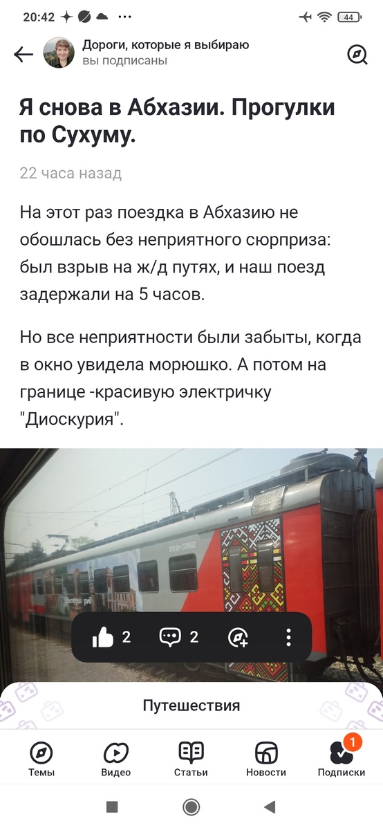 Вчера был очень приятный день. Утром мы встретились и познакомились со Светланой. Моей подписчицей. Виртуально мы познакомились в блоге у Леночки "Вот такая я путешественница". И выяснили, что будем отдыхать в Сухуме примерно в одно время, и жить будем недалеко друг от друга. Позже Светлана стала и моей подписчицей, и я подписалась на нее, чтобы не потерять , хотя блог Светлана в то время ещё не вела. И позавчера вечером у меня в новостной ленте появился новый блог.
