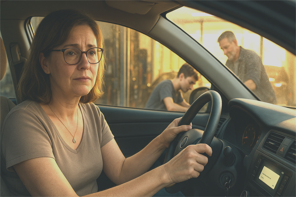 Евгения остановила машину на парковке автосервиса и посмотрела на часы — она приехала на полчаса раньше договоренного времени. Через стеклянные двери хорошо просматривался рабочий участок. Степан и Виктор склонились над открытым капотом синего седана. Отец что-то показывал, сын внимательно смотрел, задавал вопросы. Потом Степан отошёл, а Виктор сам продолжил работу.