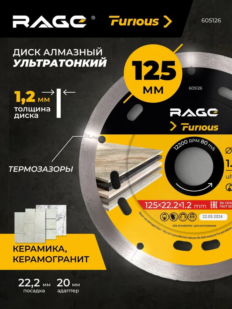 Отгремел Слет Профессиональных Строителей в Минске. Мы были рады присутствовать на этом празднике единомышленников, пообщаться с профессионалами своего дела, настоящими мастерами. А для тех, кто не смог лично присутствовать на этом празднике, мы подготовили обзор трех самых популярных и интересных позиций со слёта. Диск алмазный 125 мм по керамограниту сплошной ультратонкий RAGE Furious Диск произвел настоящий фурор на слёте, и не зря, поскольку является одним из лучших решений для прямого и чистого реза. Диск имеет сплошную кромку со специальными, компенсационными прорезями для снижения влияния нагрева кромки диска на стабильность работы. Диск является ультратонким, всего 1,2 мм, при этом он дополнительно усилен фланцем для придания дополнительной жесткости телу диска, что очень важно при прямолинейном резе. Важно отметить, что данный диск, как и любой новый алмазный диск, нуждается во “вскрытии” алмазов, поэтому перед чистовым резом рекомендуется пройти несколько метров на черновых у