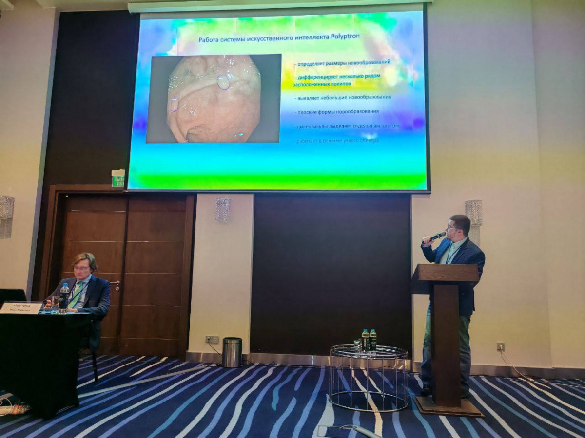 Алгоритм, построенный на сверхточных нейросетях, помогает врачам обнаруживать новообразования даже минимальных размеров. Система определяет размеры опухолей, выделяет плоские и мелкие образования менее 2 мм, отличает соседние новообразования разного типа и служит инструментом «второго мнения» для специалиста. Разработка вызвала интерес среди участников конференции. После окончания секции обсуждение возможностей и ограничений технологии продолжилось с участием специалистов, в том числе Евгения Алханова, директора по продукту «EVA Lab».