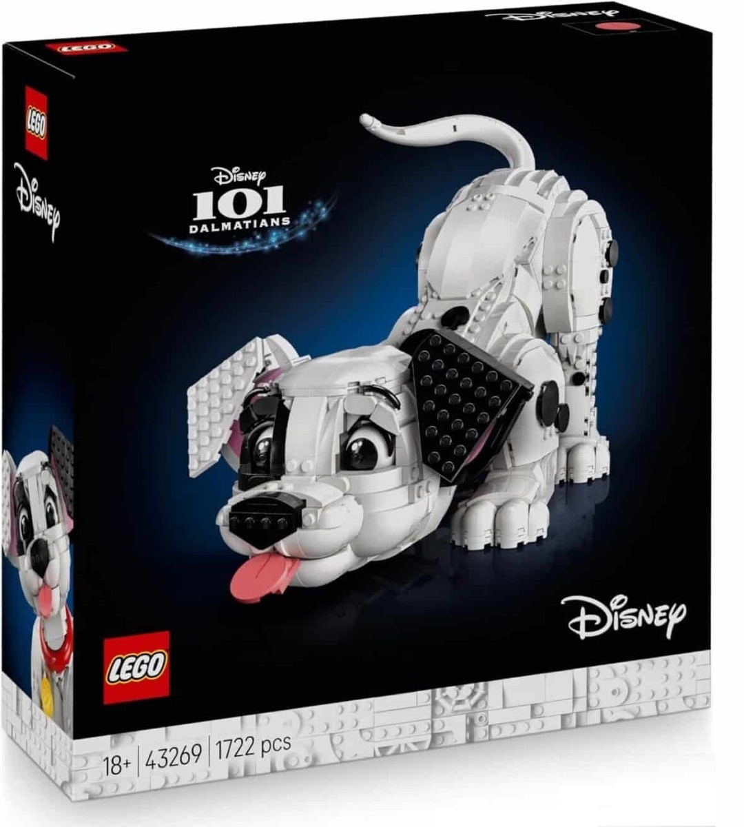 Привет-привет! Спустя шестьдесят четыре года с выхода классического мультфильма Дисней «101 далматинец» The Lego Group начинает «захватывать» перспективный рынок и поддерживать франшизу новыми наборами. Странный тайминг, но, пожалуй, сейчас истоки мультипликации Disney ничуть не хуже (а многим и намного лучше!), чем их современные произведения. Сегодня рассмотрим весьма любопытный набор, являющийся частью новой ежегодной коллекцией. Напомню, что в прошлом году летом вышел львёнок-подросток Симба. Начнём с коробки и увидим логотип «18+», а это значит, что перед нами выставочная коллекционная модель щенка, которую необходимо собрать, поставить на полочку и любоваться. Отмечаем красивые названия мультфильма и корпорации. Обо всех остальных особенностях набора поговорим ниже. Именно в такой позе щенок изображается на лицевой стороне коробки. Это значит, что так задумана основная модель, однако набор обладает внушительными возможностями для ограниченной «кастомизации». Поза щенка и высунуты