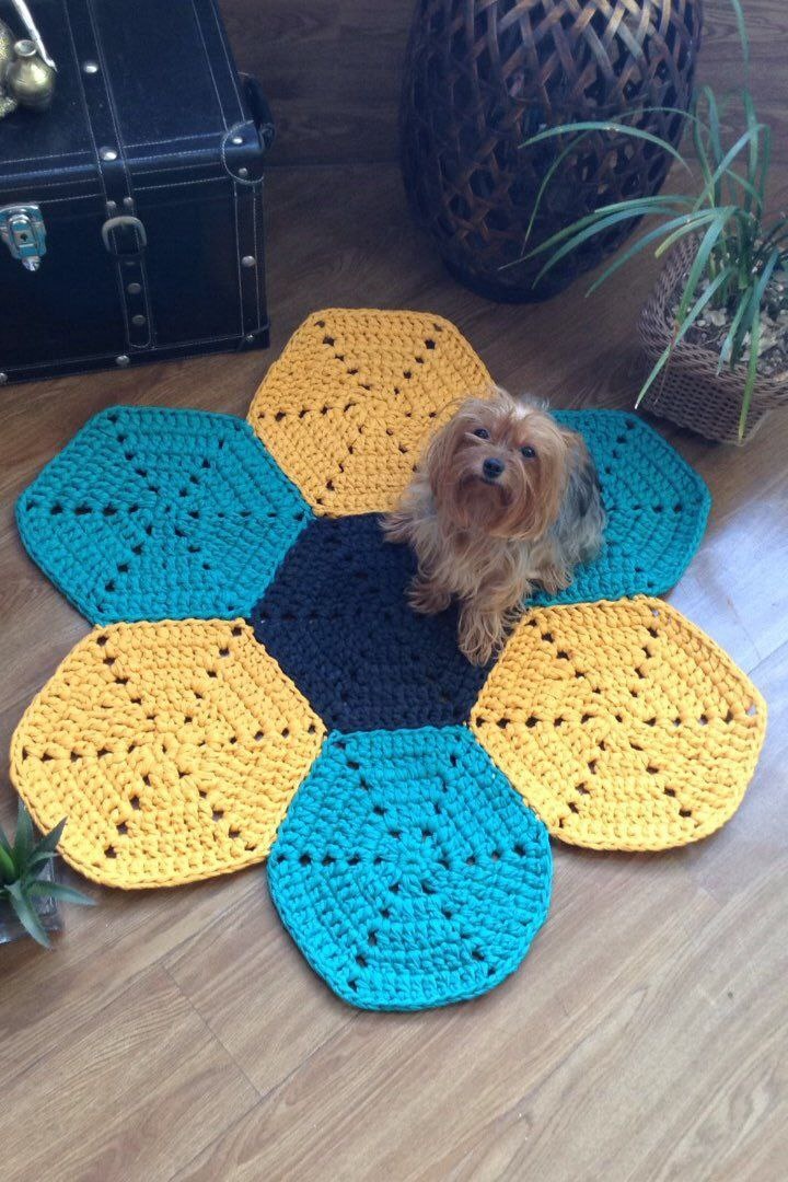 Просто, а как эффектно смотрятся коврики крючком из шестиугольников🥰 Главное – подобрать цвет пряжи в тон обстановки и мебели.