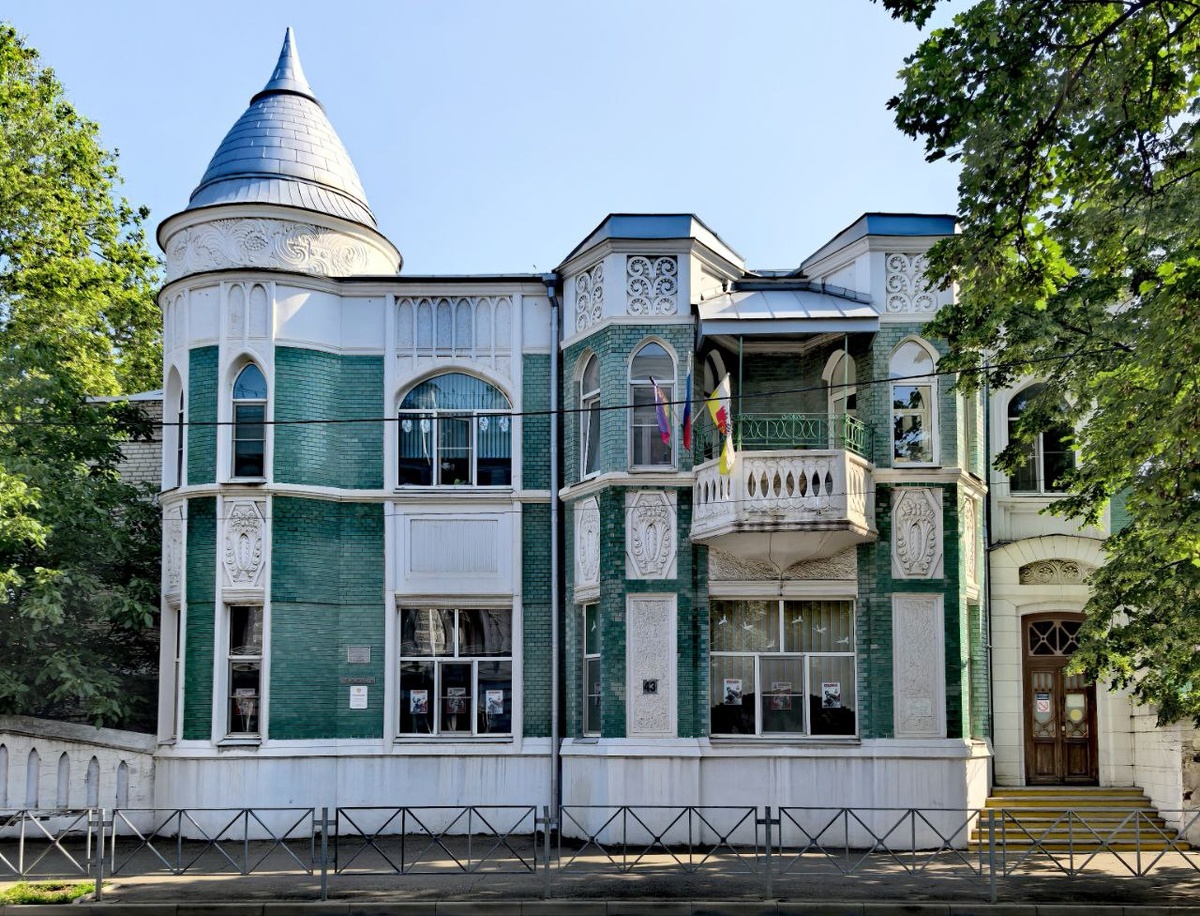 На тихой улице Комсомольской, среди будничного ритма современного Краснодара, стоит особенный дом № 43. Он будто бы застыл во времени, храня в своих стенах память о разных эпохах, людях и событиях. Его история начинается в 1910 году. Именно тогда на свет появился этот удивительный особняк, построенный по проекту архитектора Александра Козлова. Заказчиком выступил местный нотариус Егор Егорович Никифораки – обрусевший грек, человек с утончённым вкусом и высоким положением в обществе, брат Ставропольского губернатора. Дом был задуман как семейное гнездо, но стал больше чем просто жилищем - он превратился в небольшую архитектурную жемчужину города. Фасад удивляет сочетанием стилей: здесь есть элементы модерна, романского и даже готического направлений. Эркер с конусным куполом, стрельчатые окна второго этажа, парные арки во фризе, ниши в каменной ограде двора – всё это выделяет здание. А зелёная глазурованная плитка и лепные панно между этажами добавляют ему изыска и завершённости. После
