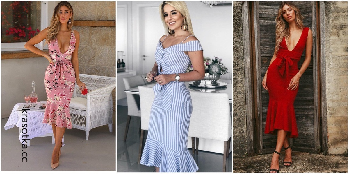 Если вы хотите создать максимально женственный и летний образ на каждый день, советуем обратить свое внимание на модные платья годе с открытыми плечами. Они идеально подойдут высоким и худеньким женщинам, которые хотят подчеркнуть романтичность своего лука. Носить такое платье вы можете со стильными босоножками или сандалиями. А в качестве аксессуаров подойдет стильная шляпка и небольшая сумочка на плечо или корзинка.