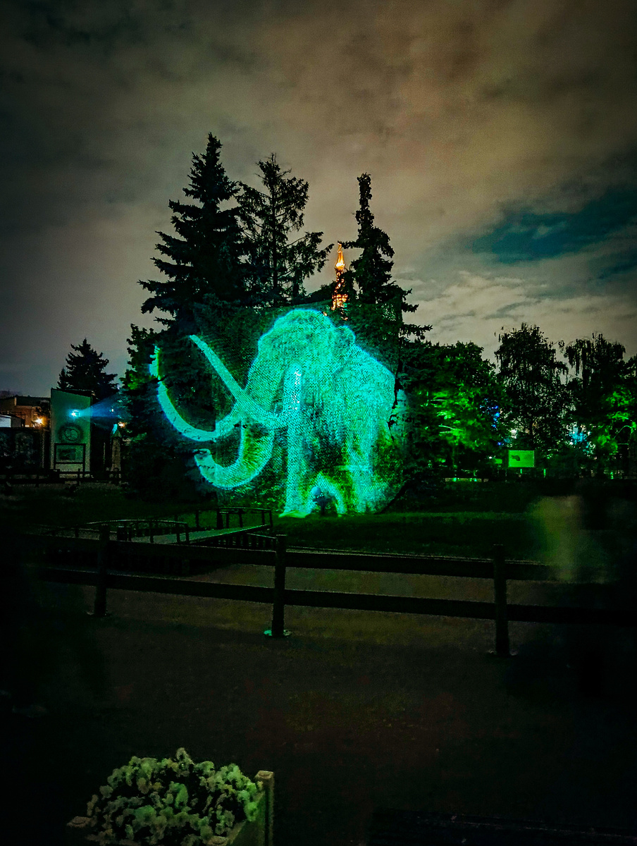 Впервые Московский зоопарк открыл свои двери ночью. Сейчас в нëм проходит интерактивная выставка "Тени незабытых предков". Это уникальная возможность познакомиться с историей при помощи современных технологий. В буквальном смысле силуэты уже вымерших к настоящему моменту, а также находящихся на грани исчезновения представителей фауны "оживают" на территории зоологического сада. Благодаря 3D-проекциям по кронам деревьев вдруг начинает грациозно ступать тигр или мамонт поворачивает хобот с гигантскими бивнями. На территории установлено несколько экранов, где проводят короткие трансляции. Интересно, что дополняются они звуковым сопровождением, которое практически не отличить от настоящего. К примеру, рычание голографического медведя вызывает неподдельный страх и восторг одновременно. По середине Большого Пресненского пруда установлена цифровая сфера, также транслирующая образы животных. Отражение воды придаëт целостной картинке особый эффект. Световые элементы добавляют жизни и