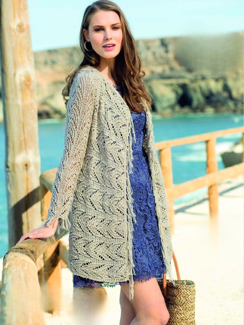 Светло-серый кардиган с объёмными ажурными медальонами ♥
