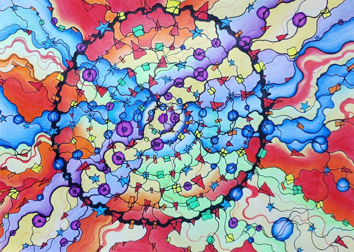 Любовь Иванова: "Алгоритм НейроМандала. Мой завершающий рисунок по курсу ОАН. Тема: Здоровье Выражаю огромную благодарность супервизорам Школы Чистый Лист Оксане Ячменёвой и Лане Евган, которые проверяли мои работы и подсказывали, как улучшить их эффективность; Людмиле Коструб за щедрость в передаче знаний;Великолепному чату за потрясающую атмосферу творчества и красоты. Благодаря Вам, я вижу и чувствую большой прогресс в своём понимании и рисовании Нейрографики... Наконец-то я смогла отпустить нейролинии, сейчас они льются более свободно, чем в самом начале моего рисования НГ. Раньше в них чувствовались моё напряжение и контроль. Постепенно линии меняются и мне они всё больше нравятся. Поняла для себя, что надо уменьшать значимость некоторых событий в жизни, чтобы "не зажиматься" - не переживать чрезмерно, чтобы становилось легче. Мандала рисовалась с большими сопротивлениями, никак не хотелось её дорисовывать. Особенно не хотела выделять ФФ и ЛП. Откладывала, не могла себя застави