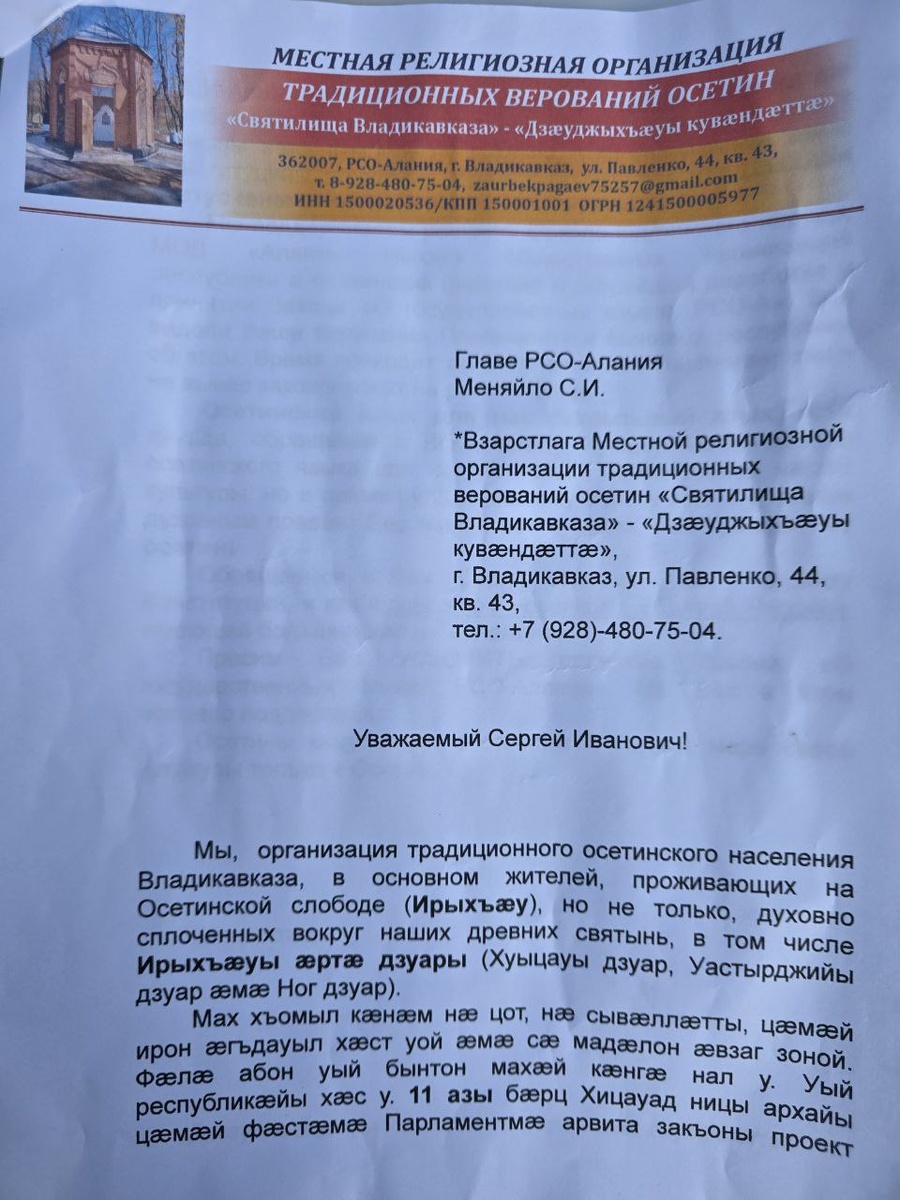 Жильцы Ирыхъæу (Осетинской слободки Владикавказа) собрали более 800 подписей под обращением к Сергею Меняйло о скорейшем принятии Закона «О