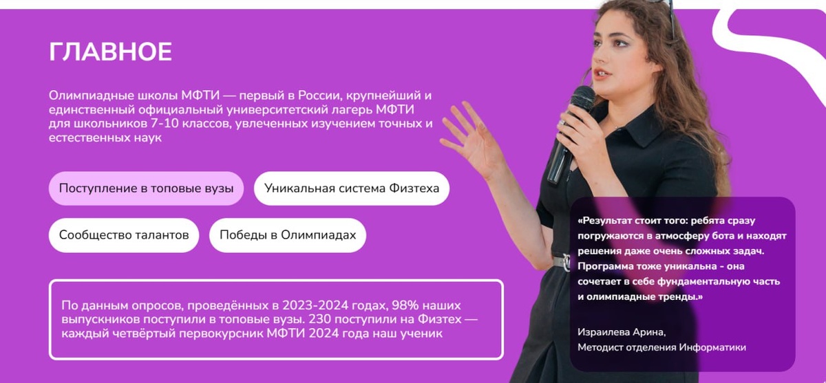 Олимпиадные школы МФТИ — первый в России, крупнейший и единственный официальный университетский лагерь МФТИ для школьников 7-10 классов, увлеченных изучением точных и естественных наук