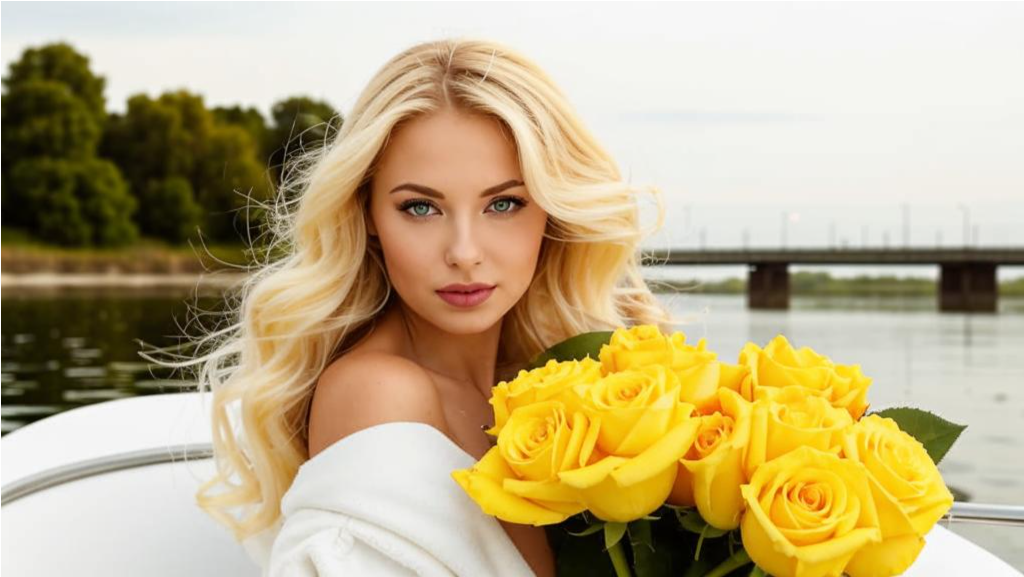 Анна стояла одна в белом платье, в белоснежном катере, с букетом жёлтых роз посреди реки. Ей стало страшно. Вокруг ни души, только вода и небо.
