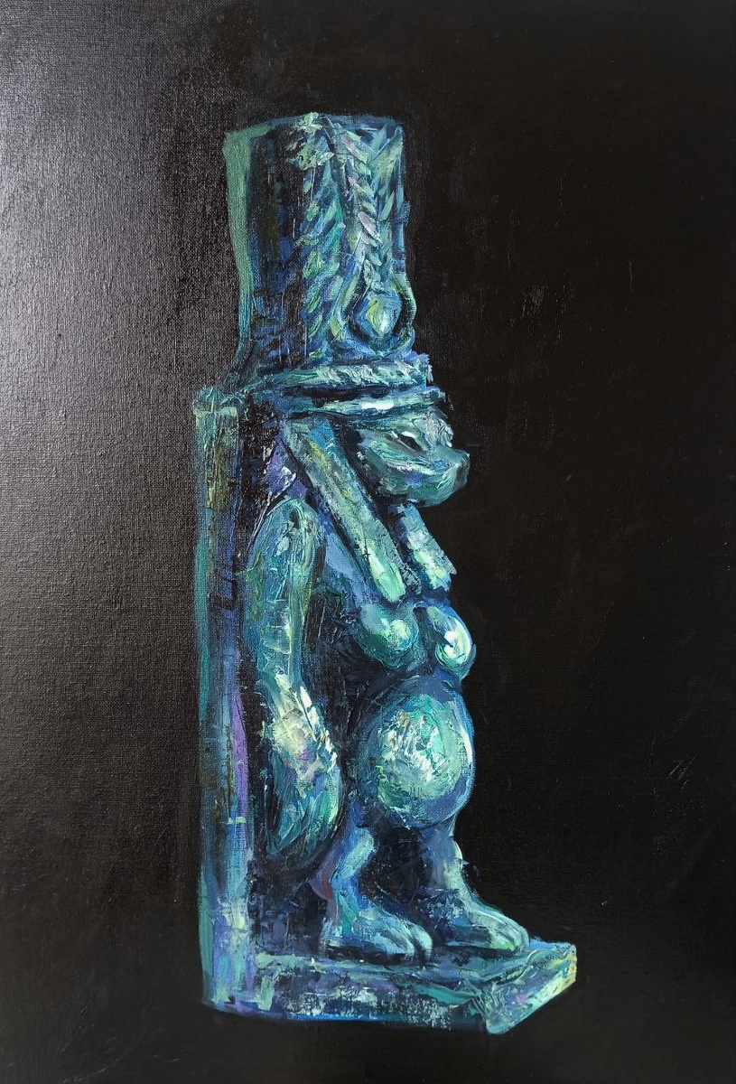 Новая картина! Пишу мастихином и покрываю даммарным лаком портрет египетской богини-матери Таурт. По мотивам фаянсовой статуэтки Paint with a palette knife and cover with dammar varnish a portrait of the Egyptian mother goddess Taurt. Based on a faience figurine #Egypt #painting #oil #paletteknife #portrait #goddess #ancientcivilizations #art #drawing #taurt #faience #Египет #живопись #масло #мастихин #портрет #богиня #древниецивилизации #искусство #рисунок #таурт #фаянс В этом посте есть большое видео, которое не загрузилось в Дзен. Откройте оригинал поста в телеграме, чтобы его посмотреть