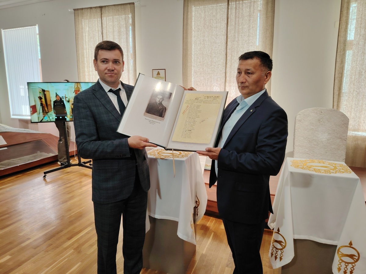 Директор Национального музея Башкирии Рустам Исхаков и глава Евразийского музея кочевых цивилизаций Николай Григорьев подписали соглашение о передаче факсимильного издания легендарного эпоса. Факсимильное издание эпической поэмы «Урал-батыр» было подготовлено Институтом истории, языка и литературы УФИЦ РАН. Оно воспроизводит оригинальную запись, сделанную в 1910 году. На III Международной книжной ярмарке «Китап-байрам» этот уникальный экземпляр передали в фонд Национального музея Республики Башкортостан. А сегодня, в недавно учрежденный День эпоса «Урал-батыр», его отправили в Евразийский музей кочевых цивилизаций. Николай Григорьев, сотрудник музея, поделился, что они с коллегами давно изучали жизнь Мухаметши Бурангулова, который записал эпос со слов сказителей. «Мы очень благодарны руководству республики за эту копию», — сказал он. «Она займет почетное место в одной из центральных зон экспозиции визит-центра, рядом с Кораном Османа и Остромировым Евангелием». Григорьев добавил, что в