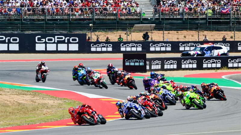 Марк Маркес из «Ducati» лидировал от старта до финиша и обеспечил себе доминирующее положение на выходных, одержав победу в гонке MotoGP в Арагоне. Восьмикратный чемпион мира завершил идеальные выходные, став лидером в каждой сессии и одержав победу в домашней гонке с отрывом более чем в секунду. Маркес стартовал с поул-позиции наилучшим образом и сохранил лидерство, опередив своего брата Алекса Маркеса до первого поворота. Франческо Баньяя также показал сильный старт и поднялся на третье место, в то время как Франко Морбиделли был оттеснен с первой линии на седьмое место. Баньяя догнал младшего брата Маркеса на старт-финишной прямой, но не сумел воспользоваться этим преимуществом, что позволило Педро Акосте обойти итальянца на прямой. Акосте не потребовалось второго приглашения, и он сделал рывок к двукратному чемпиону мира, но Баньяя сумел ответить слипстримом на подходе к предпоследнему повороту. Пара продолжила борьбу за третье место, причем позиции менялись в течение следующих нес