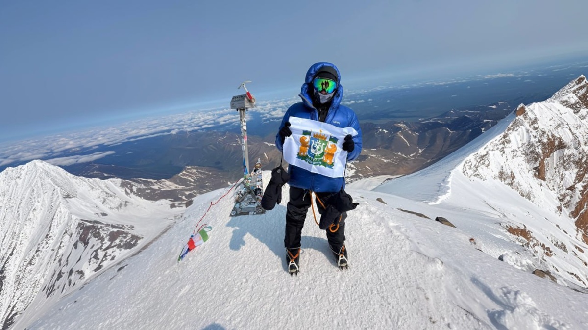 Самую высокую точку России с флагом округа покорил альпинист из ХМАО
