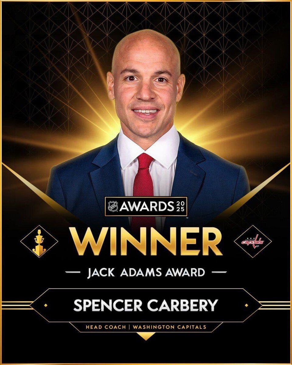 🏆 Тренер Овечкина признан лучшим в НХЛ Рулевой «Вашингтон Кэпиталз» Спенсер Карбери получил награду «Джейк Адамс Трофи», которая вручается лучшему тренеру по итогам регулярки «Я понятия не имел, что это произойдёт. Как мои родители здесь оказались? Я никогда не забуду, что они приехали в округ Колумбия и отпраздновали этот момент со мной. В командном виде спорта тренер ненавидит, когда к нему привлекают внимание. Наш вспомогательный персонал и, конечно, наши игроки — все эти люди заслуживают такой же похвалы за эту награду», — приводит слова Карбери пресс-служба клуба. 👏 Заслуженная награда? @russian_rt_sport