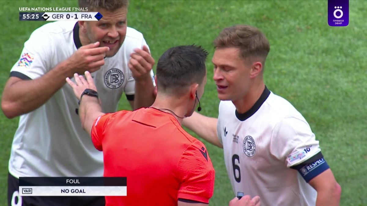 Немцы сравняли, но арбитр после длительного просмотра VAR гол отменил — нарушение правил