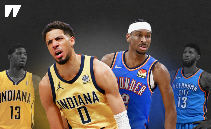 Текущий финал НБА между «Индианой» и «Оклахомой» уникален с самых разных точек зрения. Одна из них смотрит на принципы построения чемпионских команд. «Тандер» и «Пэйсерс» еще недавно никто не воспринимал всерьез, а они сломали привычные шаблоны. И интересно, что «помог» им в этом один и тот же баскетболист. Этот баскетболист не играет в финальной серии, нынешняя команда этого человека даже в плей-офф не вышла. Из заголовка вы можете понять, кто это.