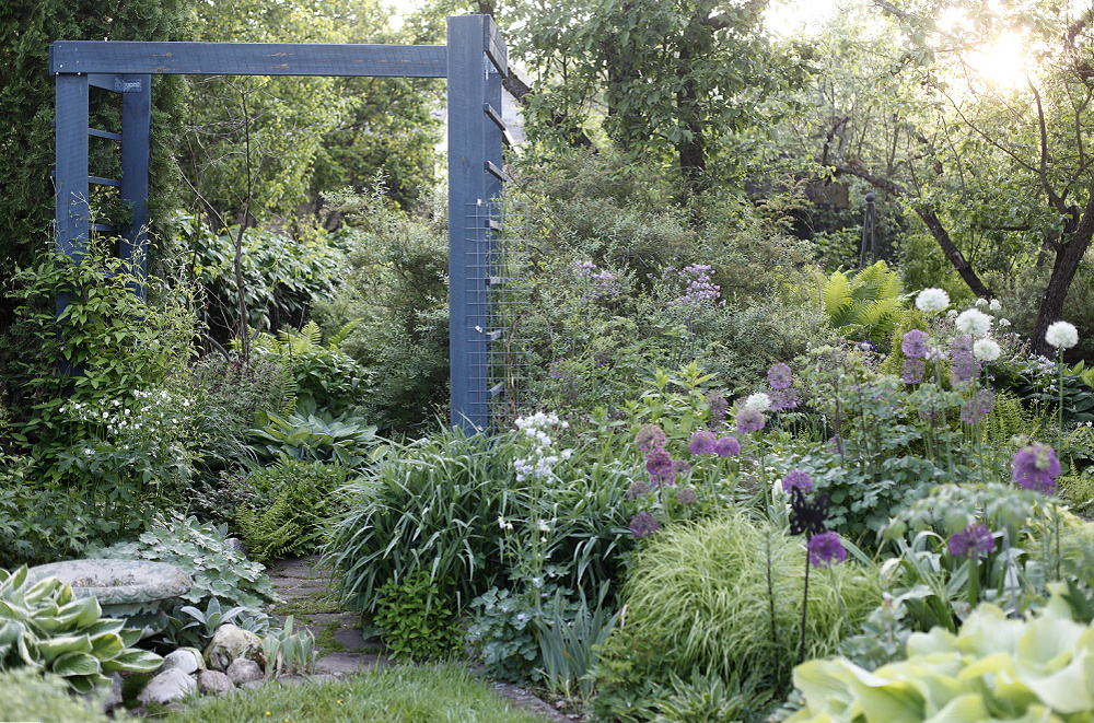 В основном сейчас хорош сад за домом. Там цветут рододендроны и луки, им в помощь - василисник и аквилегия, плюс немного примул. И конечно, декоративнолиственные растения - хосты, осока, папоротники. Давайте посмотрим сегодня на сад с луками. Здесь самый обычный лук афлатунский, и еще парочка покупных сортов. На закате и на рассвете они прекрасны. Особенно радует удачное сочетание с василисником водосборолистным. Да и к рододендрону Грандифлорум они отлично подходят! Люблю, когда растения утром подсвечиваются солнцем. Вечером луки более контрастные и яркие, если, конечно, поймают солнце! Рядом тут горка с аквилегиями, хостами, папоротниками... Завтра вторая часть, не переключайтесь...