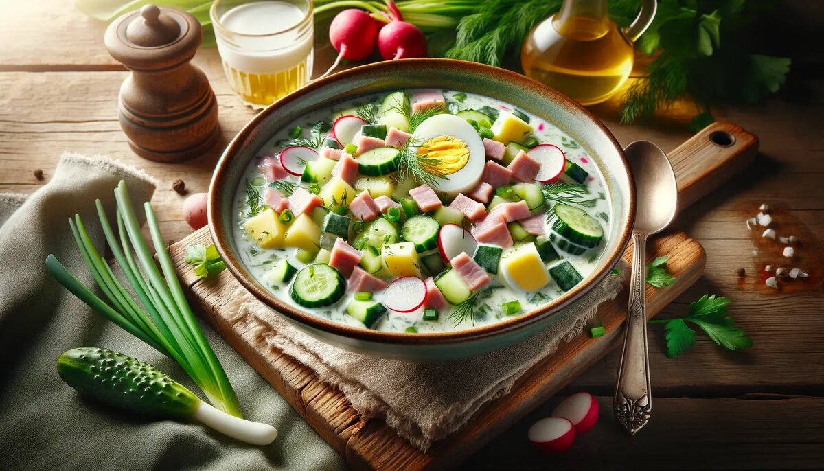 Традиционный русский холодный суп. Основа — квас, кефир, айран или сыворотка. В составе — нарезанные овощи, зелень, яйца и мясной продукт.