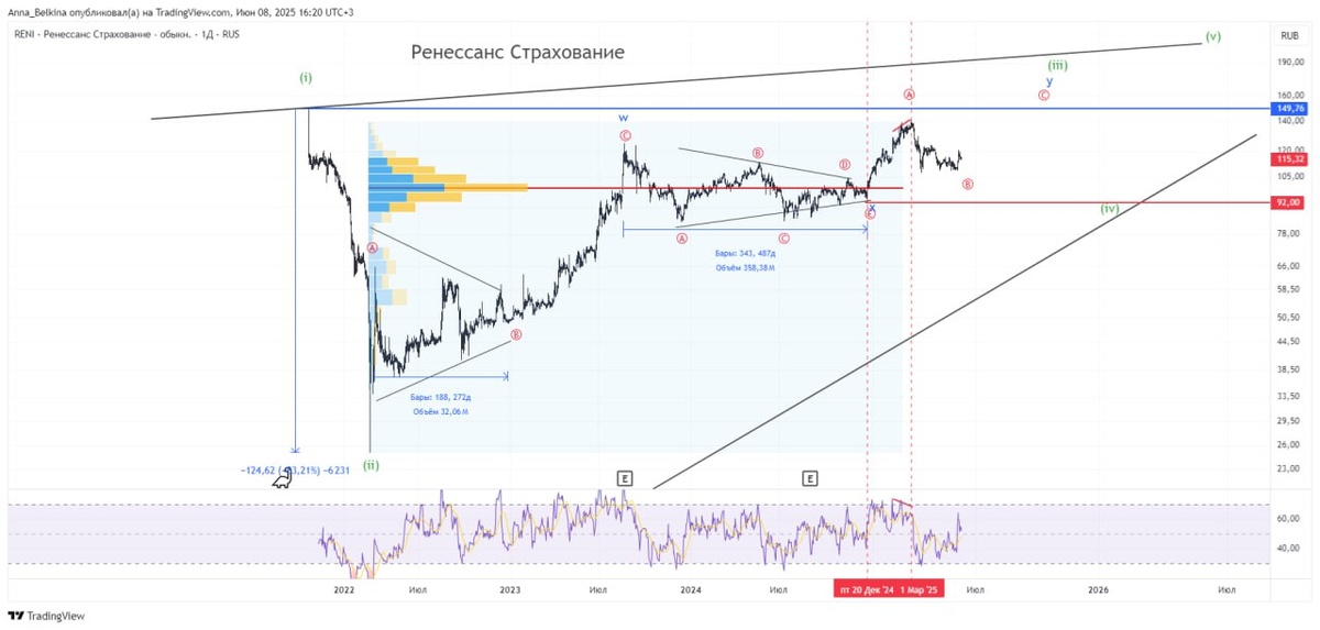 Недельный RSI в перекупленности, сформировал медвежью дивергенцию. Нужна разрядка.