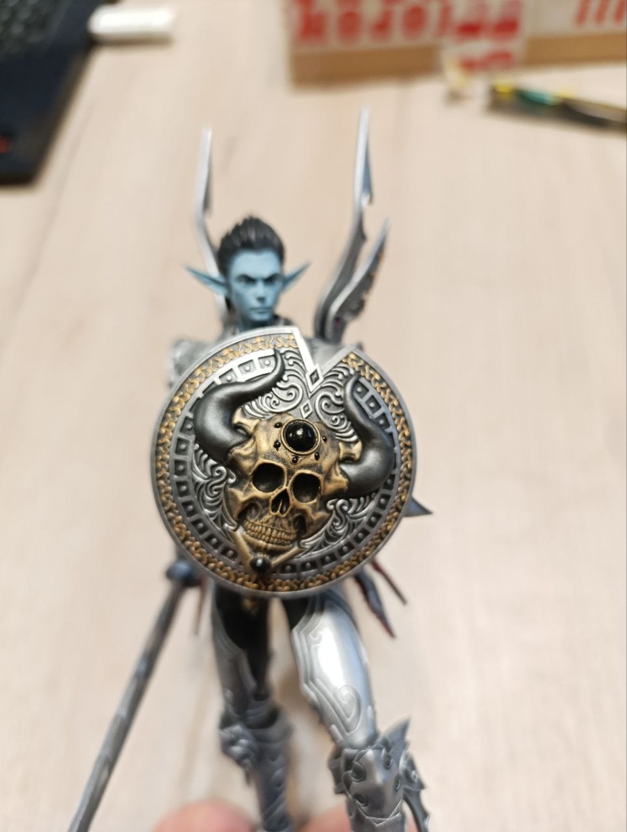 У меня всё-таки дошли руки до неё, и вот что хочу сказать... Это прям хорошо! Прям отлично! Прекрасный образец кропотливой и сложной работы. Прям видно большое количество жопочасов, внимание к деталям и задумку. Исполнение снаряжения отличное, и даже в определённом освещении даёт подумать над оттенками "металлов".