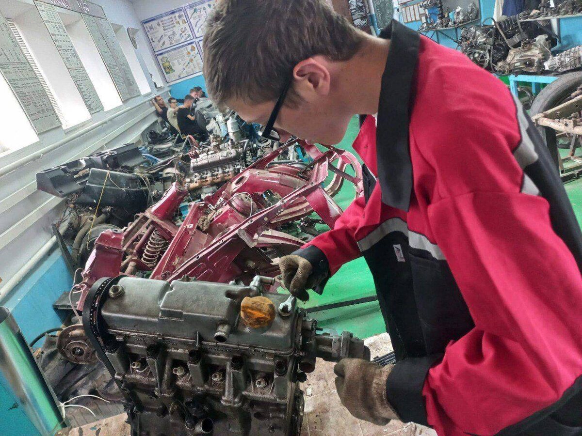 Студент Новопавловского многопрофильного техникума Никита Лизунов (специальность "Ремонт авто") успешно выполнил задания: разобрал/собрал 16-клапанный двигатель и провёл диагностику машины.