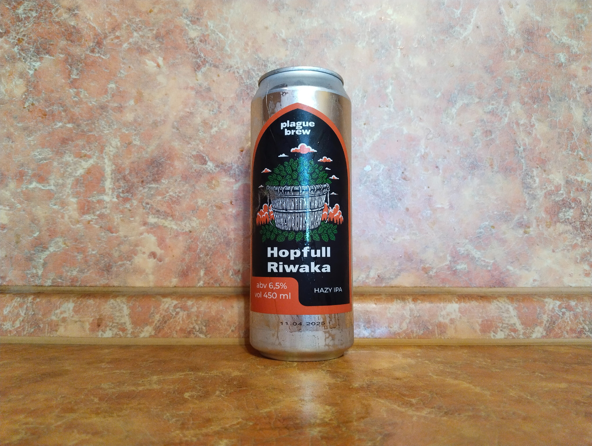 Пиво с хмелем Riwaka пил нечасто, потому и решил включить в свой заказ на SVOIDelivery баночку с данным напитком. Тем более это новинка, и синглхоп - надо попробовать и решить стоит ли вообще иметь дело с новой линейкой от Plague. Всем любителям сочных и насыщенных Hazy IPA и просто любителям вкусного пива, мы представляем нашу новую линейку сильно охмеленных одинарных IPA в стиле восточного побережья под кодовым названием Hopfull, которая раскроет для вас весь вкус, ароматику и сочность разных сортов хмеля, как, например, в этом сорте мы максимально для вас раскрыли все характеристики хмеля Riwaka, который обладает тонами маракуйи, грейпфрута, ананаса и ежевики. Алкашка/плотность - 6.5%/16.5%. IBU - ???. Стиль - NEIPA. Объём - русская пинта 0.45 л. Цена - 302 тугрика на сервисе SVOIDelivery. Состав - вода подготовленная, солод пивоваренный ячменный, хмель, дрожжи пивные. Хмель - Riwaka. Дата розлива - 11.04.2025. Производитель - ООО "Невская Пивоварня". г. Санкт - Петербург. Росс