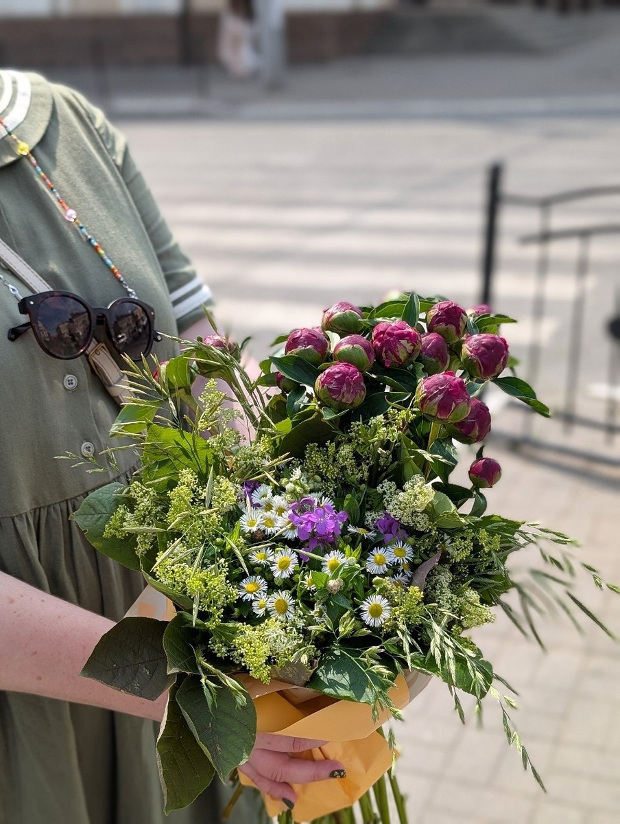 Один из любимых лайфхаков в региональных городах: купить цветы у местных бабушек и поехать домой. Вот например калужские пионы - 100 р. за штуку против московских 350 р. Лаконичный букет из ромашек, флоксов и зелени у нас отдали бы за 1000+ р., а на центральной улице Калуги – всего за 200.