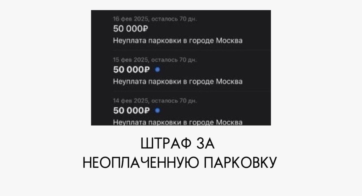 Напоминаю: с 14 февраля штраф за неоплаченную парковку для юридических лиц в Москве вырос до 50 000 рублей!