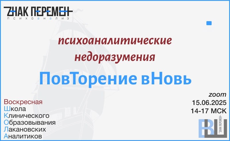 Поверхностное чтение Фрейда может ввести в заблуждение, что психоанализ лечит путём пробуждения/осознания вытесненных (бессознательных) переживаний, якобы терапевтический эффект случается, если «вспомнить детство» или «перепрожить» травму, или «высвободить» аффект, – в общем-то, это незамысловатое, но стойко популярное веяние наблудило целые методологии пси-практик определённой направленности «отматывания взад» вплоть до «перинатальных матриц», а то и вовсе «прошлых жизней». ⚡️ в вс. 15 июня в zoom с 14 до 17 МСК состоится встреча ВШ, на которой мы поговорим об одном из самых распространённых заблуждений о психоанализе, которое, по словам Лакана, «дало повод для самых невероятных глупостей». 🔹на этом мероприятии мы разберём, как одно недоразумение в текстах Фрейда, которое связано с одним из фундаментальных концептов «повторение», привело к искажению всей психоаналитической практики. Вы узнаете: ✵ почему психоанализ – это не археология памяти и не самокопание в недрах собственного
