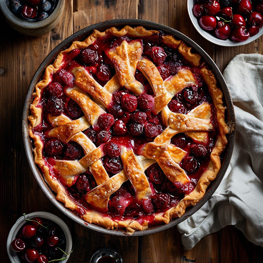 🔸 Сахар — для посыпки 1️⃣ Взбиваем масло с сахаром, добавляем яйцо, сметану, соль и разрыхлитель. Вводим муку и замешиваем мягкое эластичное тесто. Делим его на 2 части (одна — чуть больше), убираем в холодильник на 20 минут. 2️⃣ В это время готовим начинку: черешню смешиваем с сахаром, крахмалом, лимонным соком. Даём постоять 10–15 минут, чтобы выделился сок и крахмал успел «набухнуть». 3️⃣ Раскатываем большую часть теста, укладываем в форму, делая бортики. Выкладываем начинку. Из второй части теста делаем полоски и красиво перекрещиваем сверху (как на фото). 4️⃣