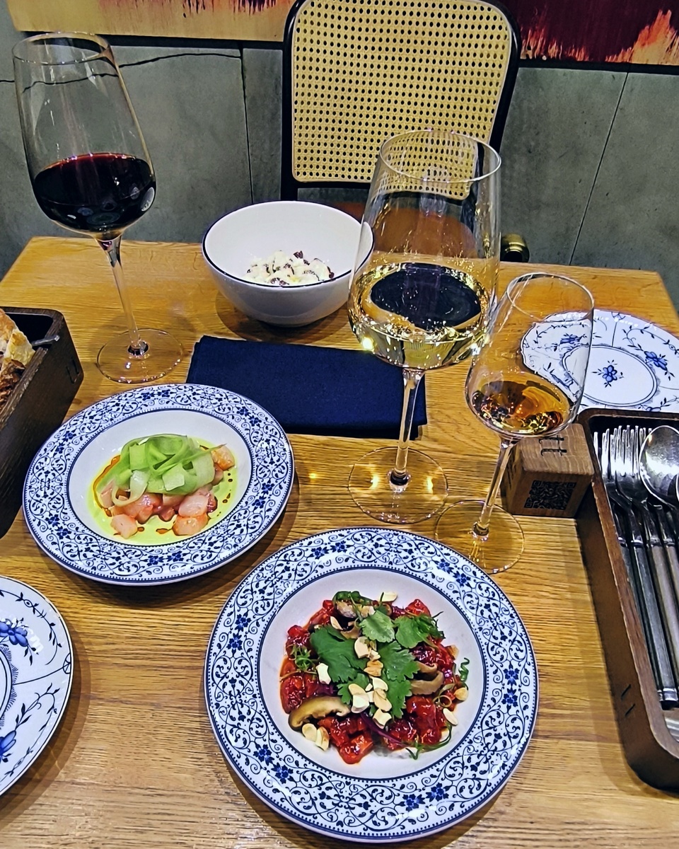 Довольно нежно по текстуре, но огурчик гасит тонкий вкус гребешка. С Шардоне получилось очень интересно: гребешок вышел на первый план, а вино внезапно стало чуть копченее.