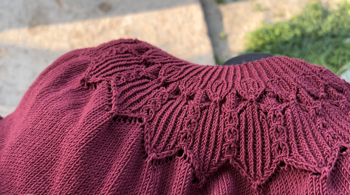 Вязание я с собой брала. До отъезда я успела довязать новый топ до подрезов, полностью вывязала росток, даже успела отделить рукава и замкнуть вязание в круг. И в электричке удалось очень продуктивно повязать - почти моточек Лючии вывязала.