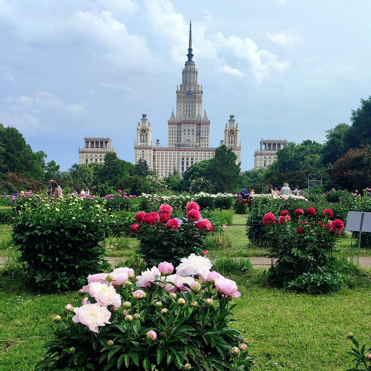 Буквально пару дней назад выходили статьи, что пионы Ботанического сада МГУ Москвы на Ленинских горах ещё не распустились – а вот сегодня, 8 июня, на сайте сада появилась запись – НАЧАЛИ! Сад на Ленинских (Воробьёвых) горах живёт тут 75 лет, из которых большую часть жизни он по настоящему научен, а не просто красивый цветник в центре города. Дендрарий с деревьями, розарий с розами, сирингарий с сиренью, а пионы, видимо по такому принципу, живут в пионерии – цвет у некоторых цветов как минимум подходит. Добраться до сада проще простого, правда, надо быть в Москве – на машине, такси или метро, разницы нет. По воскресеньям можно смело парковаться на платной разметке – по выходным (а к ним отнесли именно воскресенье) парковка бесплатна. Билеты можно купить на сайте без очереди (и показать контролёру при входе) или в кассе, отстояв некоторую очередь. После ливня посетителей было мало, а капли дождя, разогнавшие жителей по домам или кафе, сверкали на цветах пионов природными бриллиантами. Г