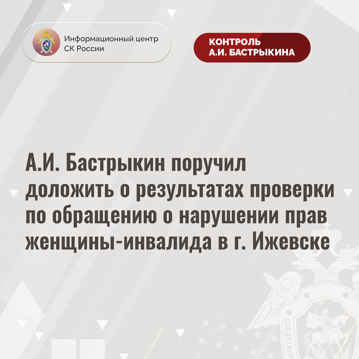 А.И. Бастрыкин поручил доложить о результатах проверки по обращению о нарушении прав женщины-инвалида в г. Ижевске
