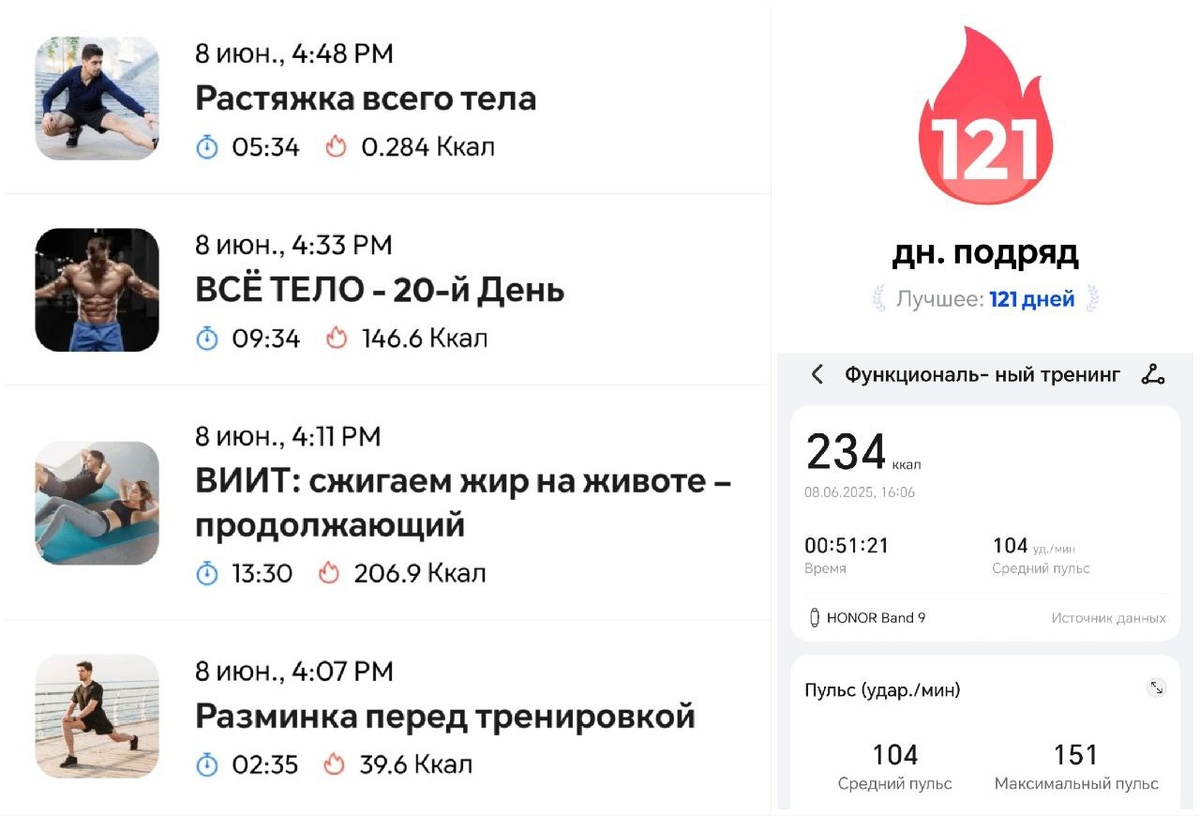 🏋️♂️ Упражнения. День 121. 🗓 08.06.25 💪 День ведения блога: 151 ⏱ 00:51:21 🏄♂️ 234 ккал ☝️ Опять у меня не хватает времени выполнить полный комплекс намеченных упражнений... 💪 Но мне кажется, что скоро я раскидаюсь с делами и смогу вернуться в график! #упражнения_дома 😎 Roman Legas | Life